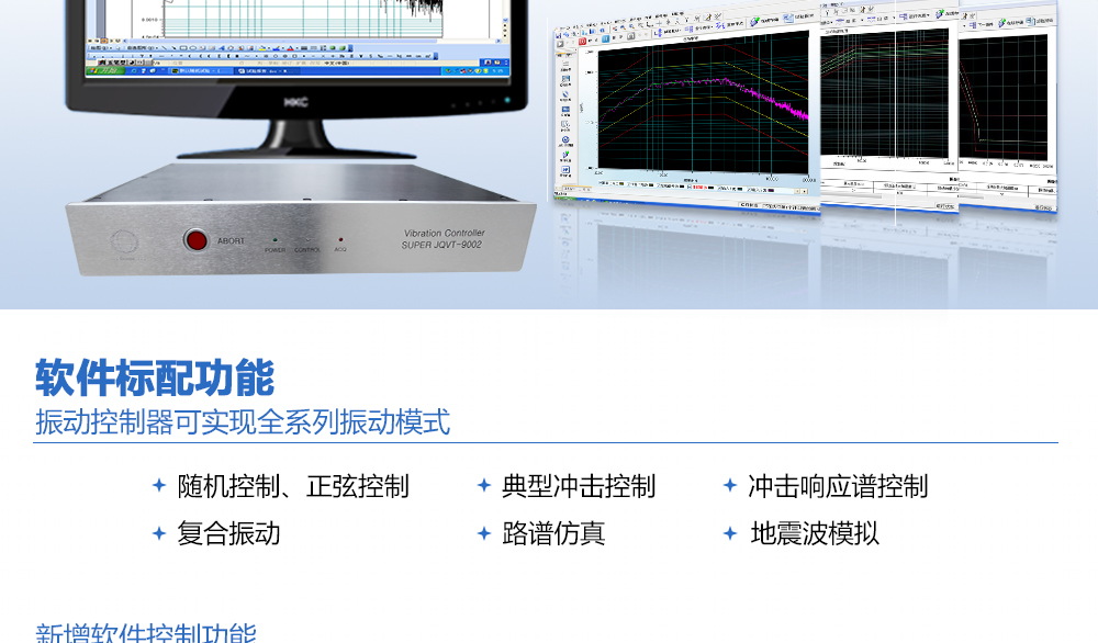 產(chǎn)品型號:JQVT-9000系列 品牌:劍 喬 用途:振動控制器可實現(xiàn)全系列振動模式,包括隨機控制、正弦控制,典型沖擊控制、沖擊響應(yīng)譜控制、復(fù)合振動、路譜仿真以及地震波模擬。同時,為了進一步創(chuàng)新振動控制技術(shù),以適應(yīng)更咨詢熱線:13829135130